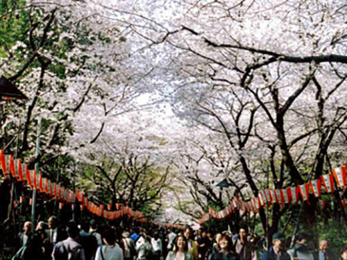 両国から2キロメ-トルほど北西に行くと、上野公園が桜の名所として有名です。東叡山寛永寺(天台宗の関東総本山、本尊は薬師如来)や西郷隆盛の像、恩賜上野動物園や東京国立博物館などもあります。