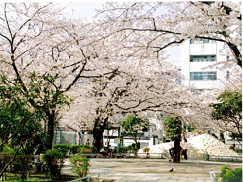 明法道場がある東京、両国の地は隅田川のすぐ東側に位置しており、道場の近くには幕末に活躍した幕臣、勝海舟の生家のあった場所などもあります。現在、小公園(両国公園)になっていて、3月下旬から4月上旬にかけては桜がきれいです。