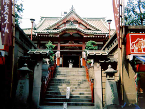深川不動堂は正式には成田山東京別院深川不動堂といいます。元禄時代の江戸の不動尊信仰の広まりに応えて、元禄16年(1703年)4月に成田山新勝寺の本尊、不動明王が永代寺境内(現在地付近)ではじめて出張開帳(江戸出開帳)されたのがその起りです。明治2年(1869年)になって深川不動堂の名称が認められ、明治14年(1881年)に最初の本堂が完成しています。本堂は関東大震災と第二次世界大戦の二度にわたって焼失しましたが、ご本尊は焼失を免れて現在の不動堂に祀られています。