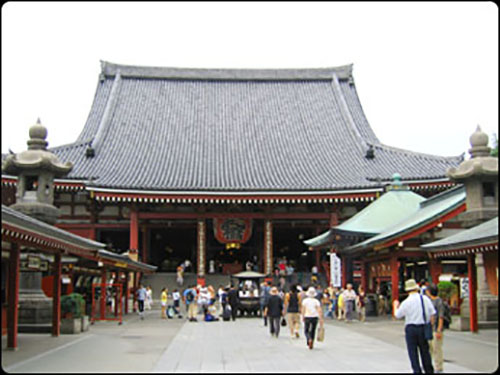 両国から隅田川に沿って2キロメ-トルほど北上すると、多くの外国人客に人気の浅草(あさくさ)、浅草寺(せんそうじ)があります。