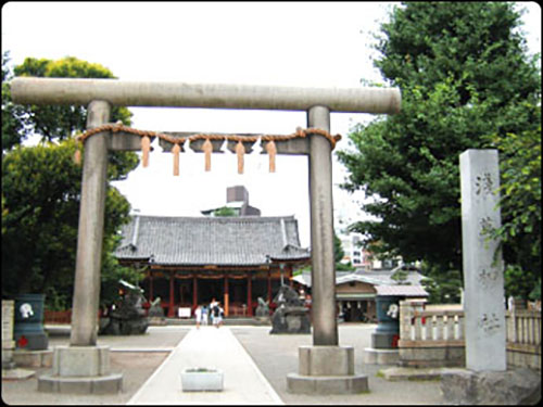 両国界隈には多くの相撲部屋や相撲に関するさまざまな記念物がありますが、相撲の神様としての野見宿禰を祀っている神社もあります(墨田区亀沢2丁目)。日本書紀によると、垂仁天皇7年、出雲の野見宿禰は大和の当摩ノケハヤと戦って蹴り殺したとあります。これが角力(すもう)の最初とされているようですが、どちらかといえば現在のカラテのようなものだったようです。野見宿禰神社は明治17年(1884年)の創建。初代、高砂親方の尽力により元津軽家の屋敷跡に作られた小さな神社ですが、境内には歴代横綱の石碑(二基)が建てられています。